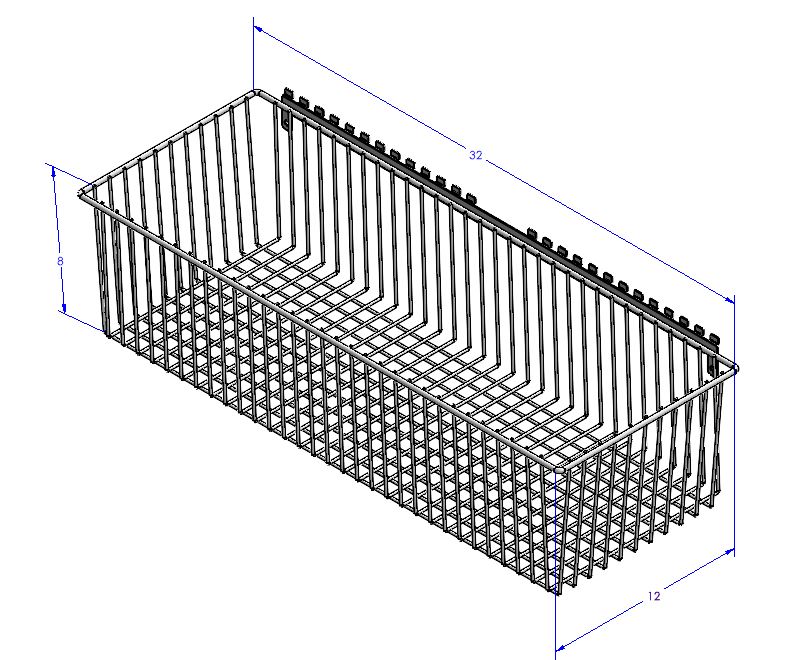 The OmniWall Xtra Large Wire (32" x 8" x 12") is formed wire and sheet metal combined to give you the ultimate storage basket. All OmniWall metal baskets use vertical slots to hold the basket and the round hole is used as an additional securing method. This makes OmniWall baskets the only two point secured product on the wall organization market. OmniWall 32" x 8” x 12" metal basket is used for Xtra Large product storage, keeping it close at hand and organized. Perfect for cords and sports equipment.